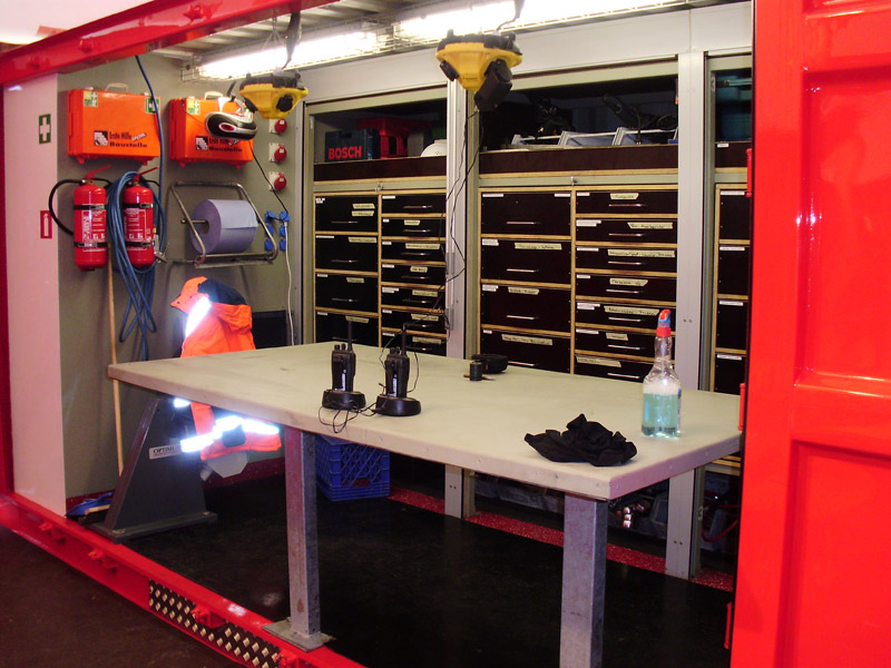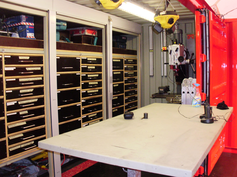 Wir verfügen über transportable Werkstattcontainer, Lagercontainer und Bürocontainer, die wir rund um den Globus einsetzen.