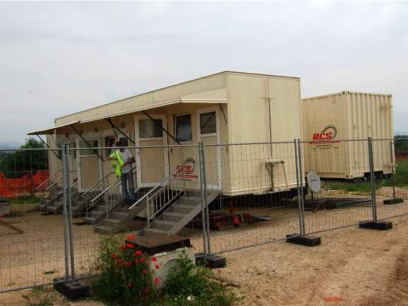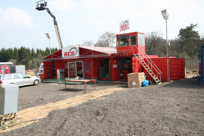 Wir verfügen über drei komplette Werkstattdörfer, mit denen wir sämtliches benötigtes Equipment, Büroplätze, Küche, Lagerplätze und Werkstätten vor Ort bereitstellen können.